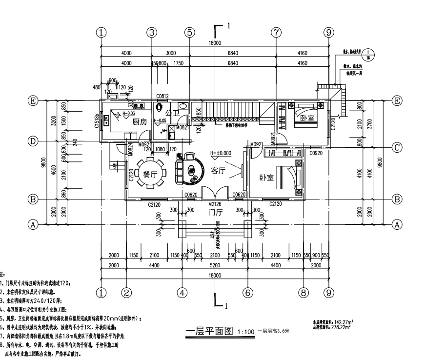 建筑面积:278.22平米 占地面积:142.27平米 占地尺寸:18MX9.8M 结构形式:框架结构/砖混结构 建筑层数:2层 外墙装饰:水包砂、文化石等