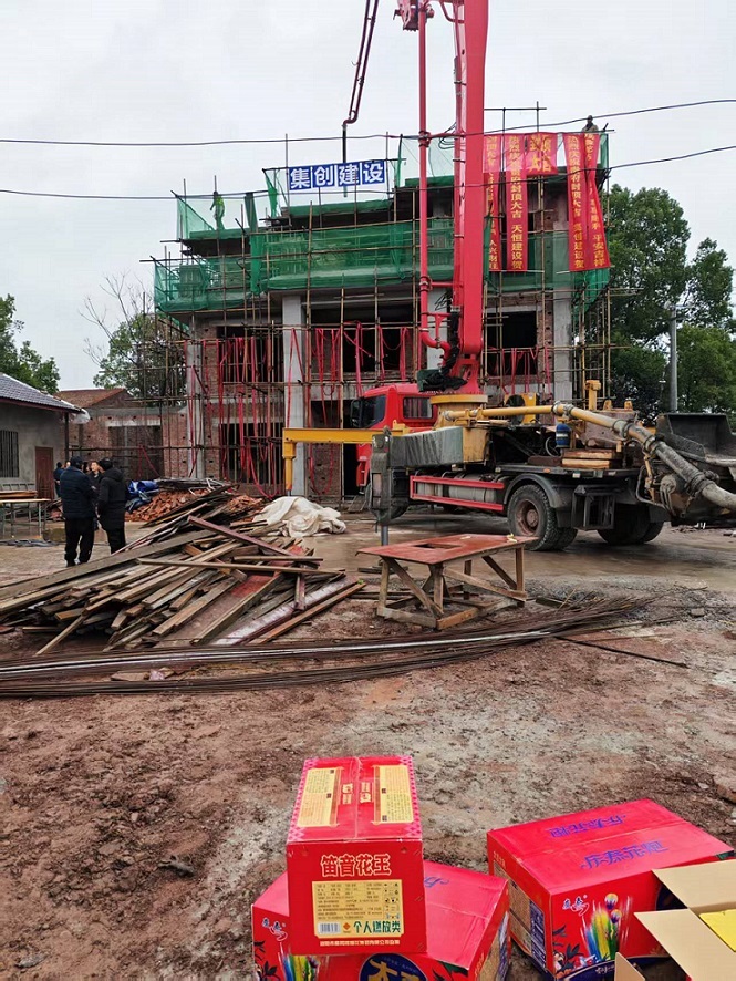 施工阶段,集创建设以包工包料模式全程负责项目推进:从钢筋、水泥等建材的集中采购(确保质量与成本可控),到木工、泥工等多工种的协同管理,团队严格遵循施工标准,每日跟进进度、每周复盘问题,有效避免了农村自建房常见的“材料浪费、工期拖延”等痛点。自9月初开工以来,项目克服了秋季多雨等不利因素,如期完成基础浇筑、主体结构搭建等关键工序,蕞终实现12月23日封顶的目标。